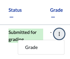 - In the grading table, select the row you want to grade, and open the More kebab menu